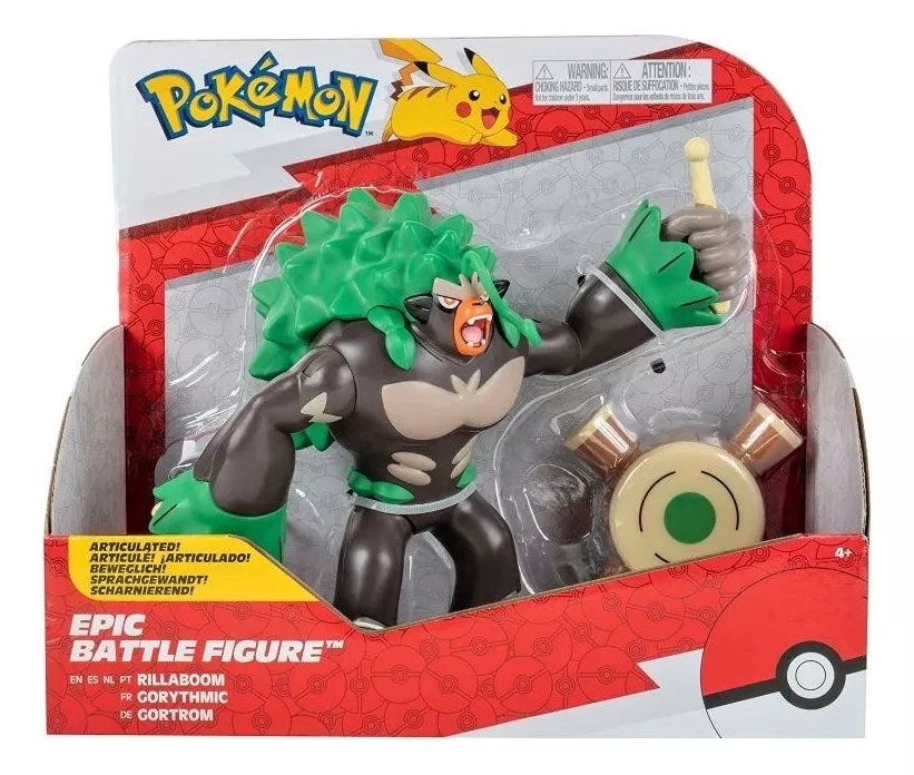 ¡Tu equipo Pokémon está a punto de crecer! La figura de batalla épica de 30 cm de altura Rillaboom tiene varios puntos de articulación para movimientos dinámicos y tiene detalles realistas.