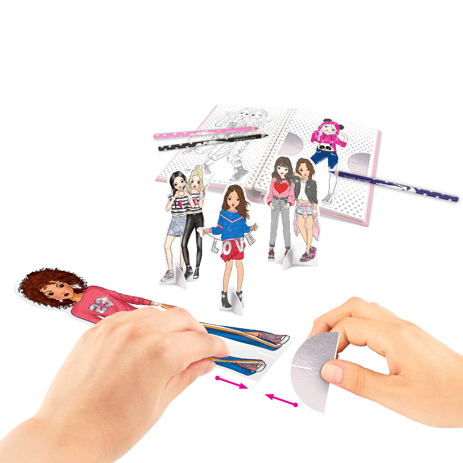 Deja que las modelos se pongan de pie y construye tu propio mundo TOPModel con las figuras de cartulina. Primero píntalas, después extráelas y comienza a jugar con las modelos.